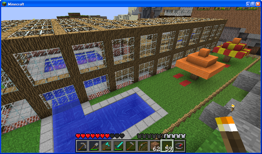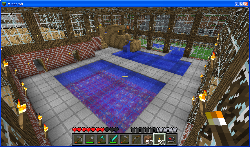 See a Youtube video of my latest minecraft building, an indoor swimming pool with zombie-cashier, locker room, bath room, therm, parasols and an awesome slide.